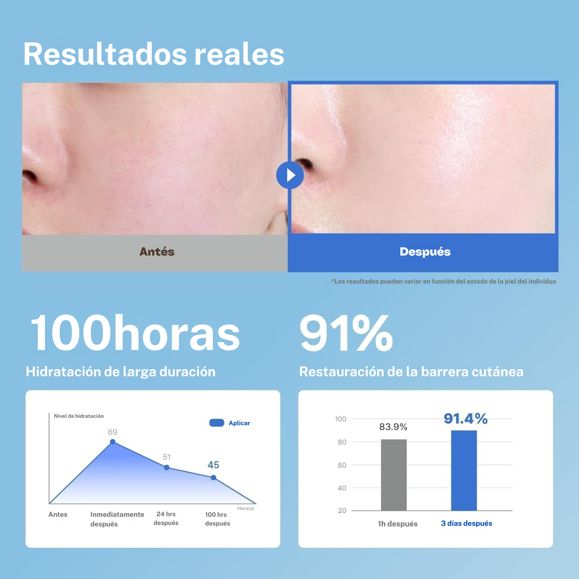 Con la tecnología Ceramide Skin Complex, restaura hasta el 91% de la barrera cutánea y disfruta de hidratación profunda hasta 100 horas. Ideal para piel seca y sensible, reduce irritación y enrojecimiento mientras fortalece tu piel desde la primera aplicación ✨